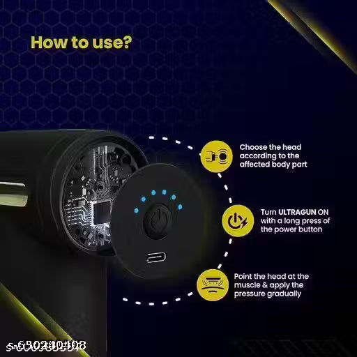 This massage gun is designed to relieve muscle pain, stiffness, and soreness. It helps improve blood circulation, relax tight muscles, and speed up recovery after workouts or long working hours.